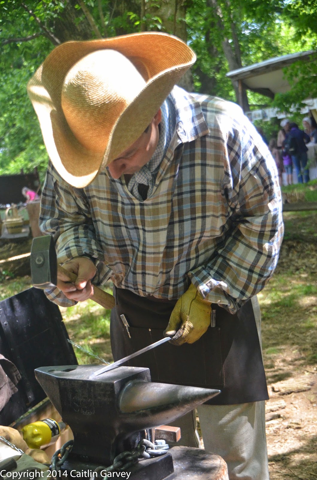 As always, we had a great time at the May Market Fair at Claude Moore Colonial Farm. We set up two anvils, as well as the "kid-friendly" anvil with aluminum that bends without being heated, and enjoyed a weekend of teaching and visiting....plus, good food, a chance to see some wonderful artists in action, and even Florence the sheep who was set up in a pen next to us! Claude Moore is a special event and we look forward to July's fair on the 19th and 20th.
